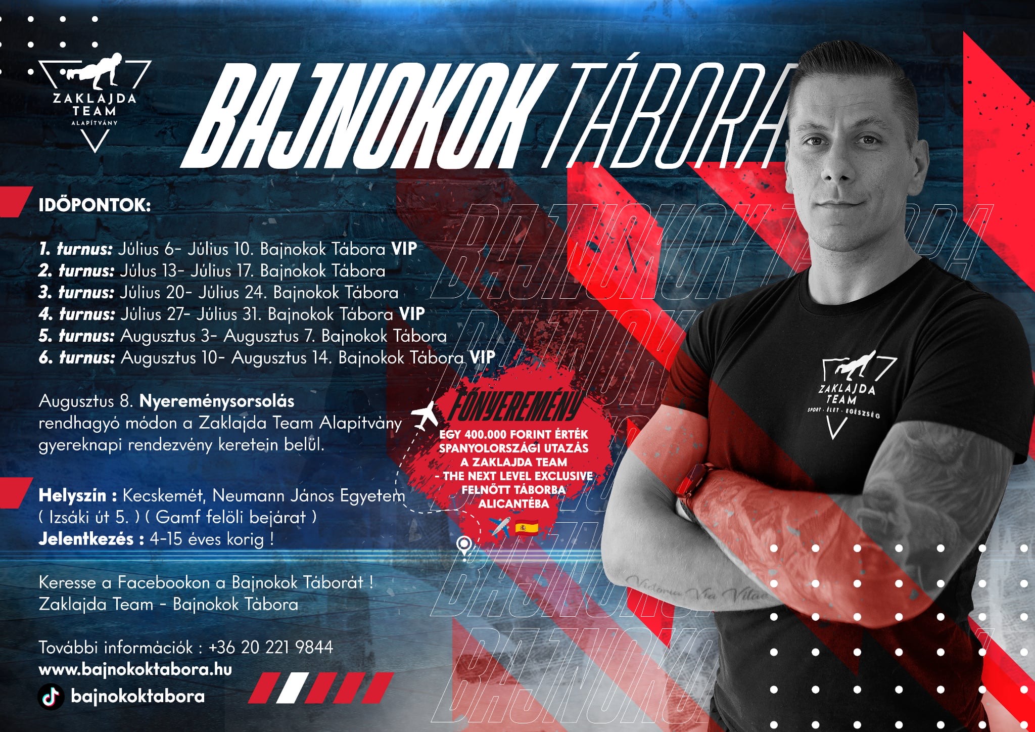 A Zaklajda Team- Bajnokok táborának ez volt az egyik kiinduló gondolata, hogy milyen jó lenne a sport-élet-egészség komplex életérzését már a gyerekekben is elültetni. A Zaklajda Team Bajnokok tábora nem egy hagyományos edzőtábor, hiszen nem csupán a testmozgás tölti ki a táborozók napjait, rengeteg ismeretterjesztő, készségfejlesztő és élményprogramot is kínálunk a résztvevőknek.